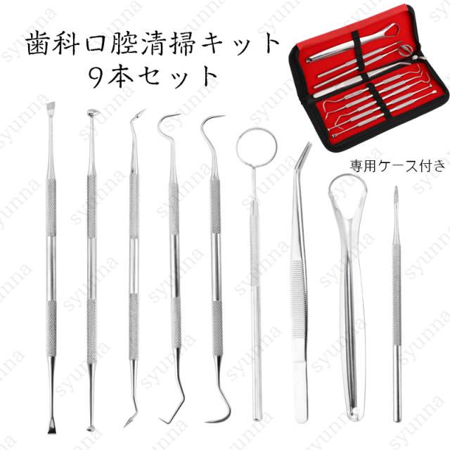 歯科口腔清掃キット 日本国内当日発送 9本セット 歯石取り 舌ブラシ 歯の清掃ツール 舌みがき 送料無料 タングスクレーパー 歯石 専用ケース付き #br36