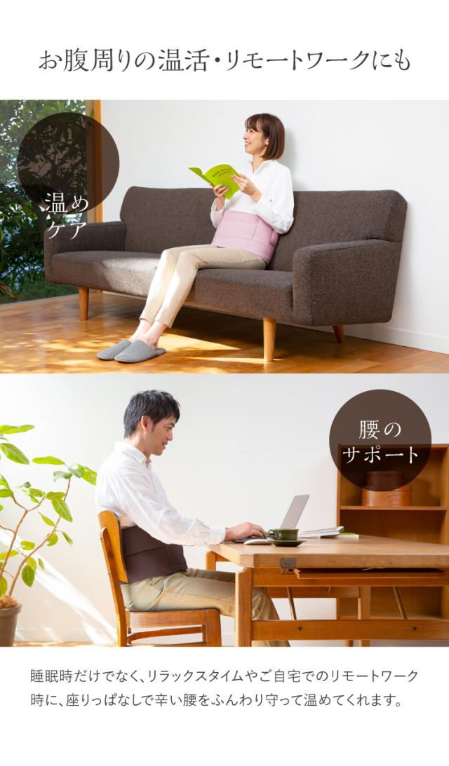 巻いても、敷いても使える2way仕様。寝る時だけでなく、仕事中やリラックスタイムにも運転中の腰サポートにも最適。