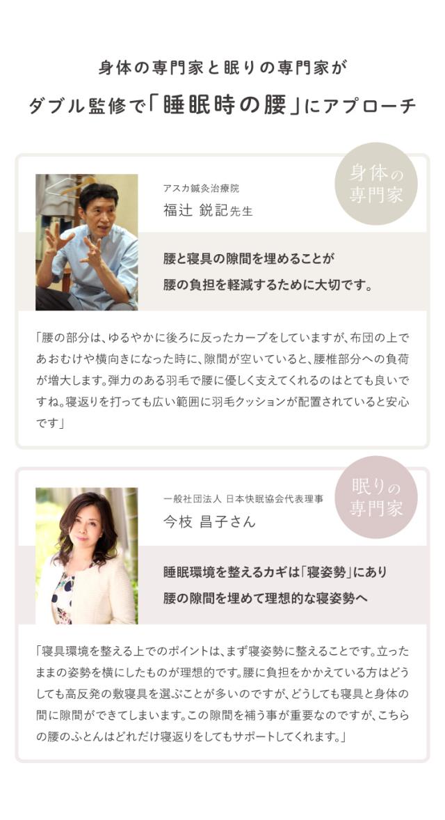 ふんわり羽毛にやさしく包まれて心地よく眠る腰専用のふとん