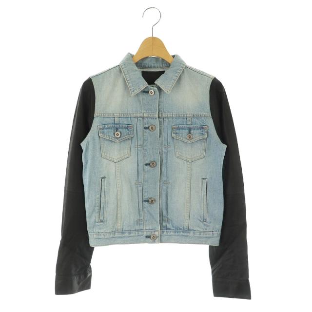【中古】リヴドロワ RIVE DROITE 切替 デニムジャケット ジージャン Gジャン やぎ革 36 青 ブルー
