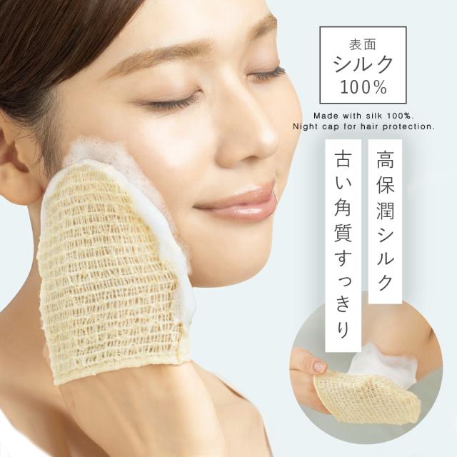 高保潤シルクのフェイスミトンで古い角質すっきり絹艶美肌。
