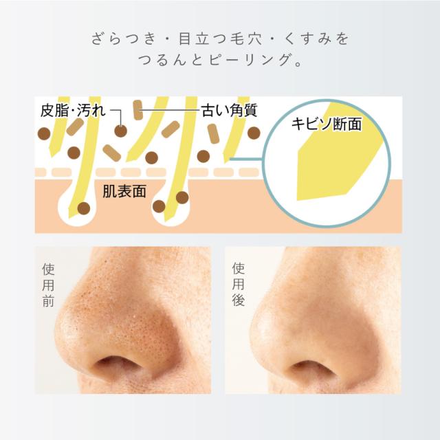 キビソの断面は三角形だから繊維の角が汚れや古い角質を落としやすく洗い上がりすっきり。
