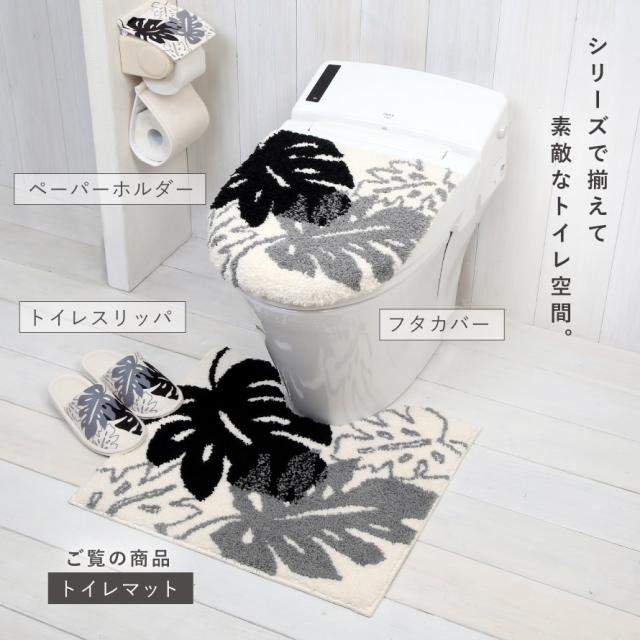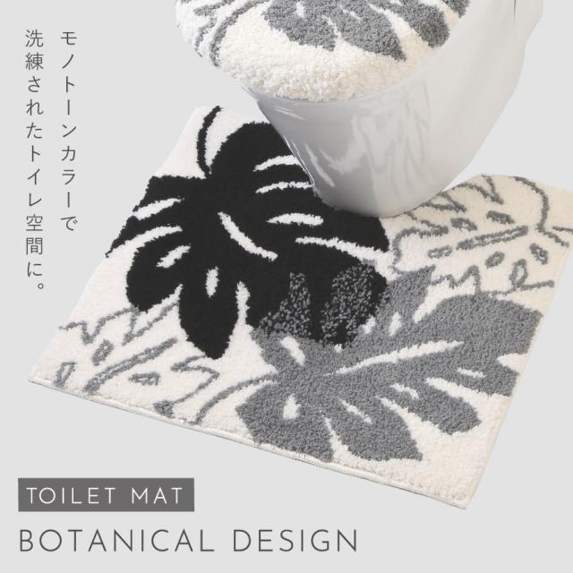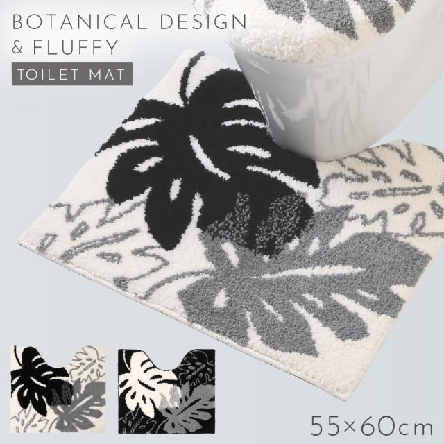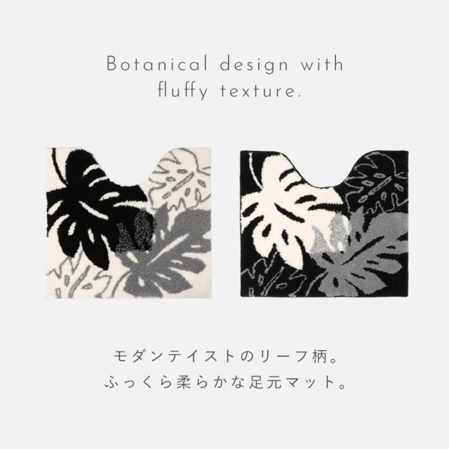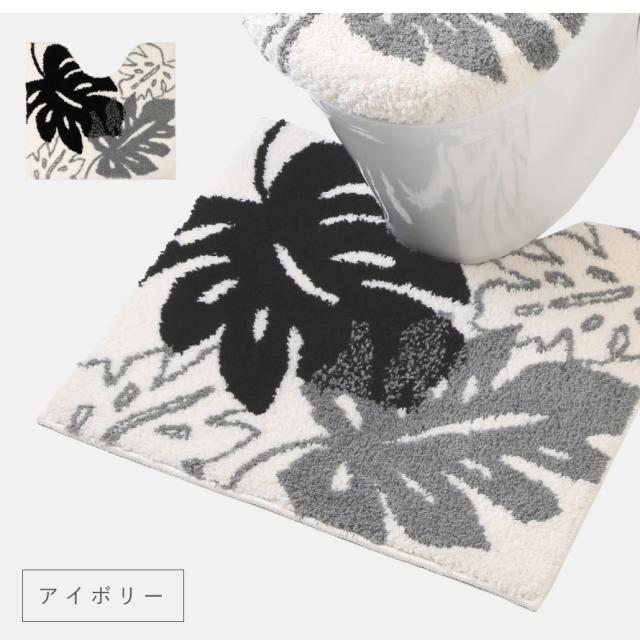 トイレマット モノトーン ふかふか 60×55cm トイレ 洗える モンステラ 柄 ブラック 黒 アイボリー 北欧 おしゃれ モノ・ステラ トイレ足元マット