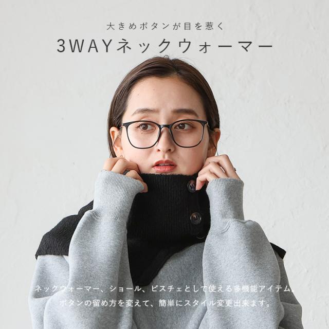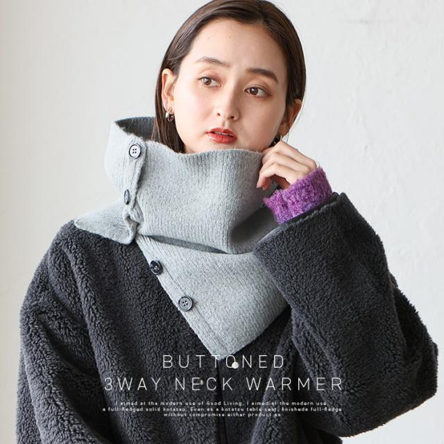 ネックウォーマー レディース ボタン付き マフラー かわいい おしゃれ 3WAY ボタン式 ショール ビスチェ 軽量 軽い ショートマフラー ストール 秋冬 無地 シンプル 通勤 通学 簡単 防寒 防風 あったか grs-gmf7485 【メール便】 【aroco/アロコ】 プレゼント