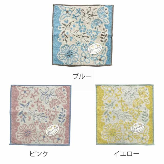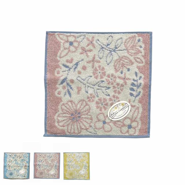 タオル ナチューラファブリカ モーメント タオルチーフ 25×25cm ( ミニタオル たおる ハンカチ 手拭き 綿100% 吸水 ボタニカル柄 ジャガード織 手拭きタオル ハンドタオル 汗拭き ふんわり 25×25 ブルー ピンク イエロー )
