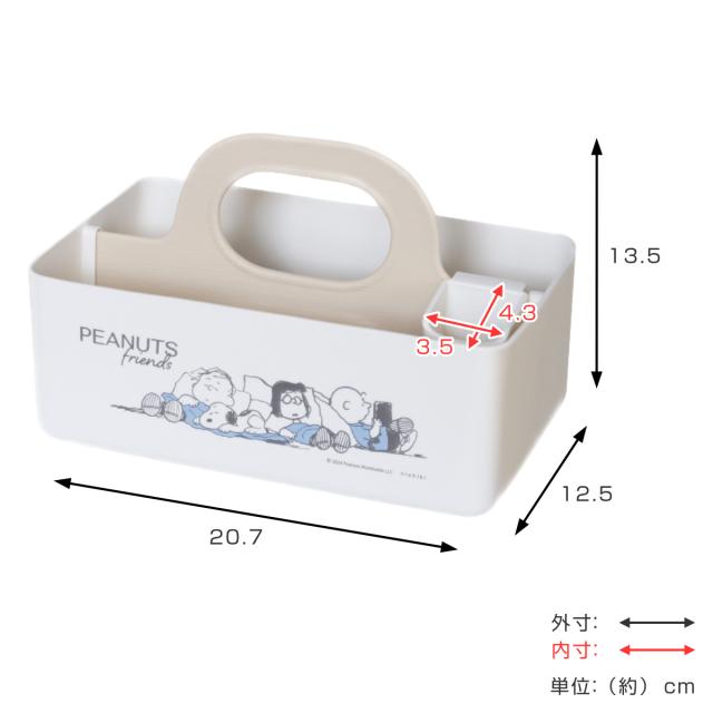収納ボックス ミニモッテケース スヌーピー 小物入れ 幅20.7×奥行12.5×高さ13.5cm ( SNOOPY 小物収納 ハンドル付き 収納ケース 仕切り付き 日本製 小物ケース リビング 収納 ケース 卓上 整理整頓 持ち運び コンパクト )