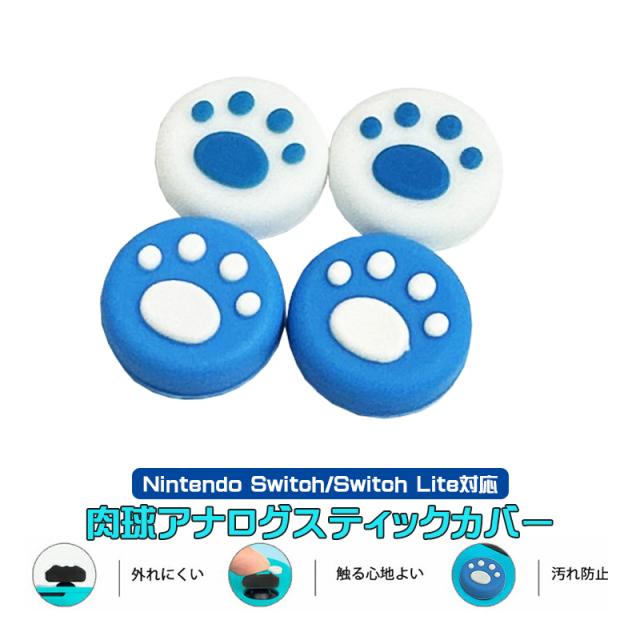 Nintendo Switch 有機ELモデル Switch Lite対応 アナログスティックカバー 下地ブルー ブルー肉球 各色2個 4個入り 【送料無料】