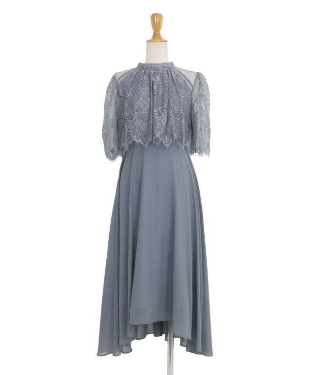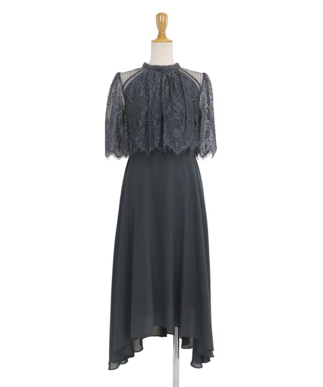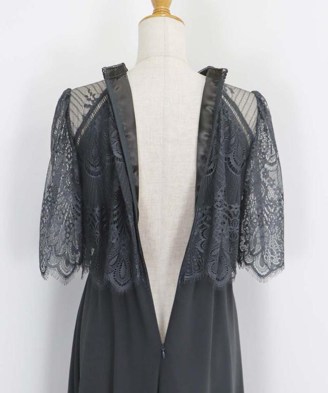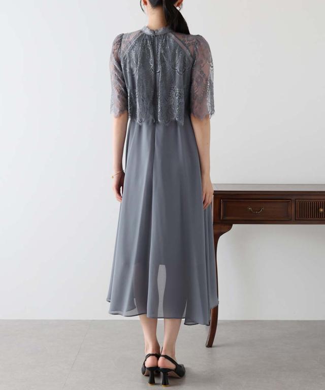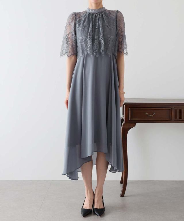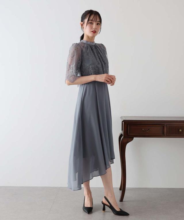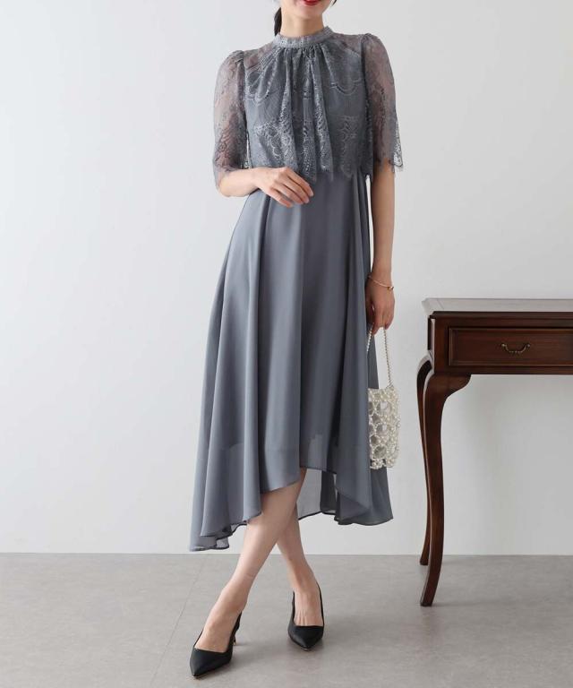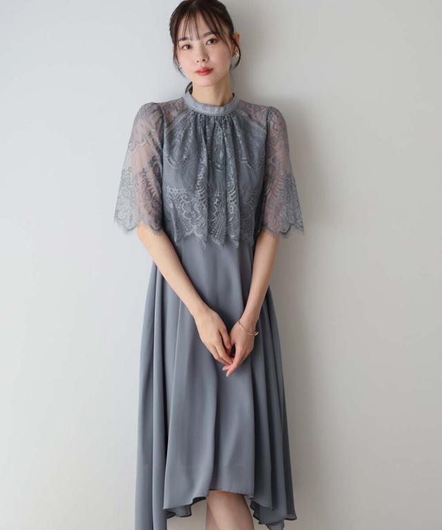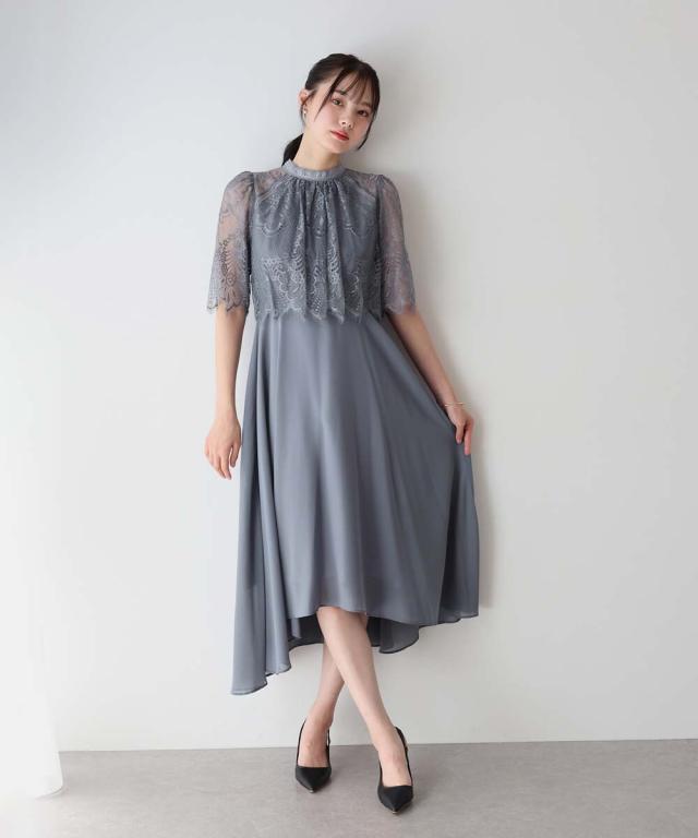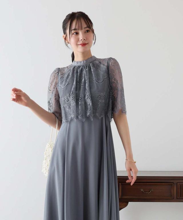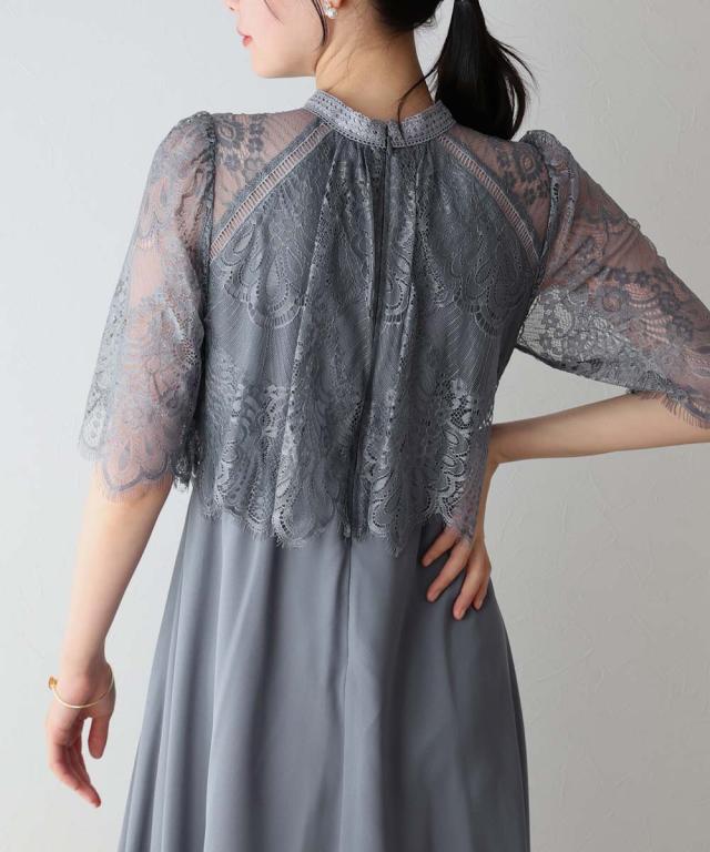 レースの組み合わせが上品なパーティーワンピース・結婚式ワンピース