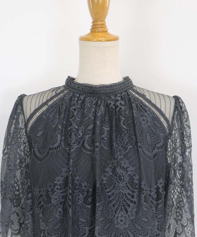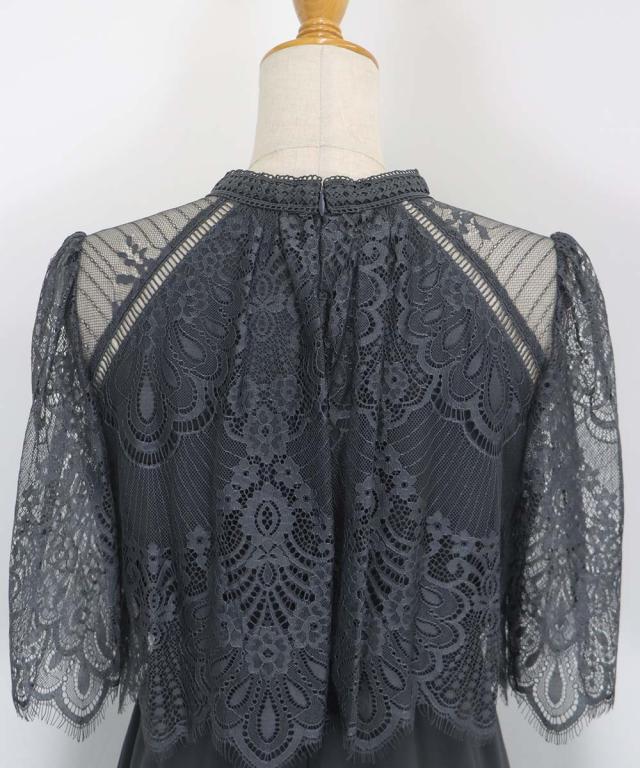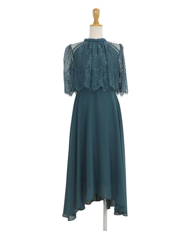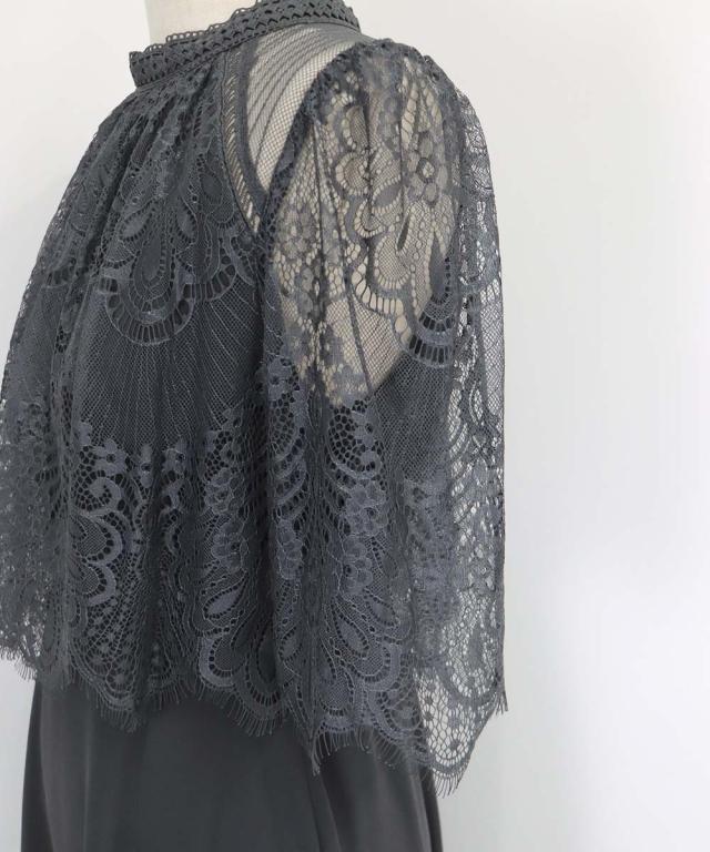 繊細なレースと清楚なボトルネック、スカートは分量を多めに取ったフレアシルエットドレス。
