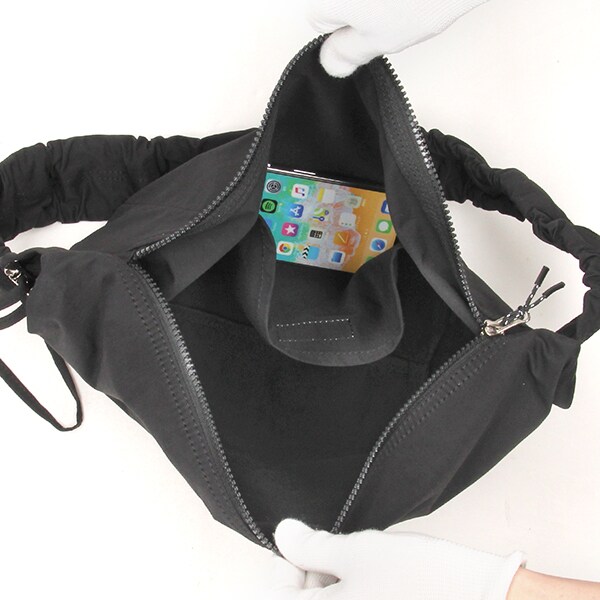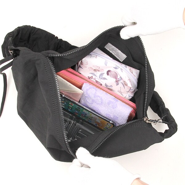 クシュっと寄せたキャザーハンドルがポイントのショルダーバッグ。