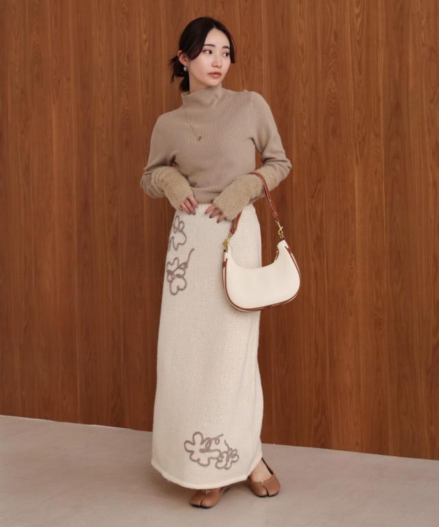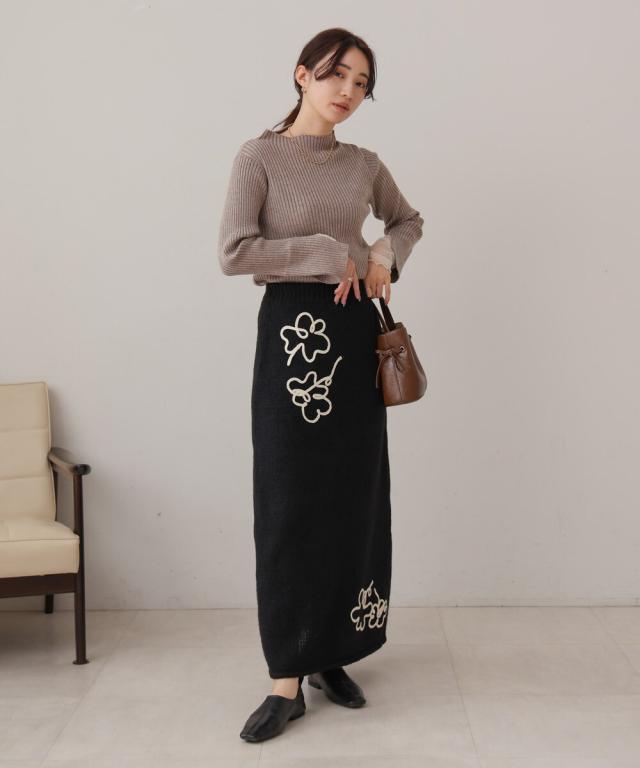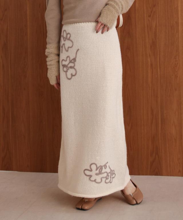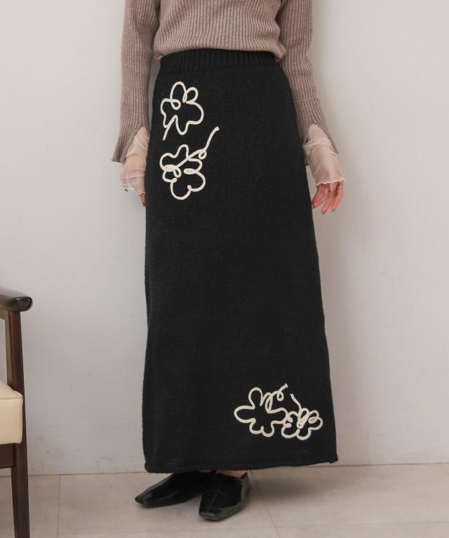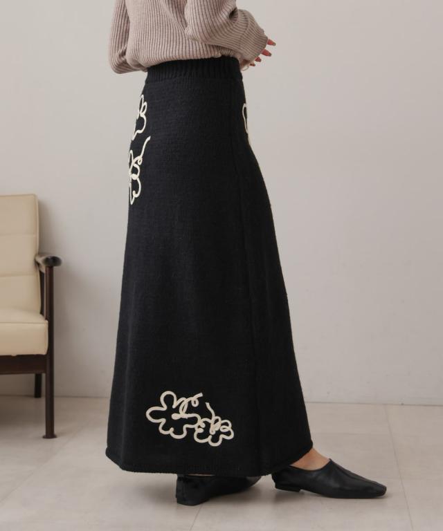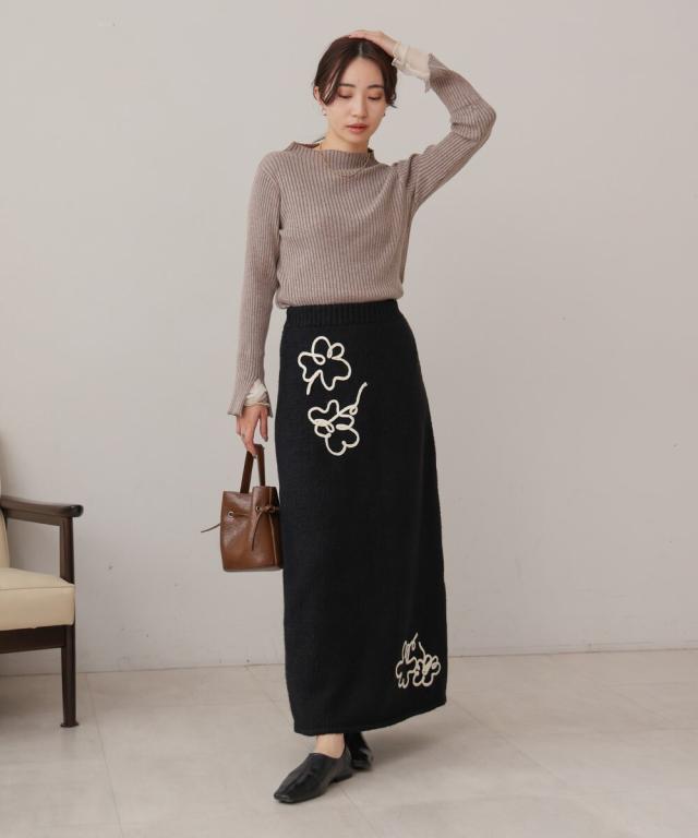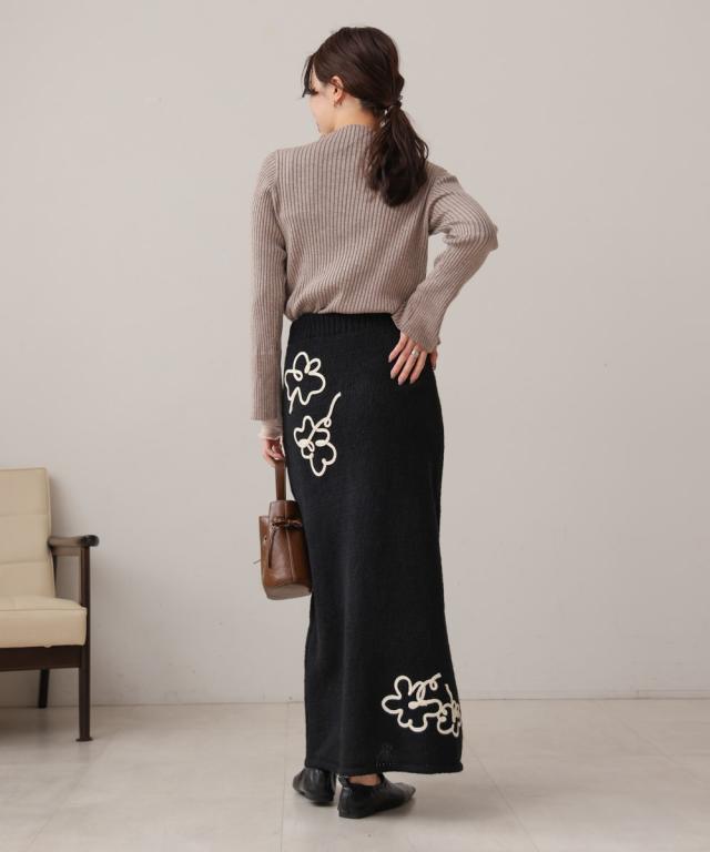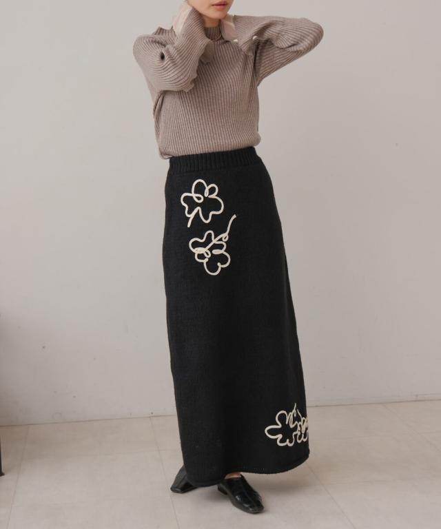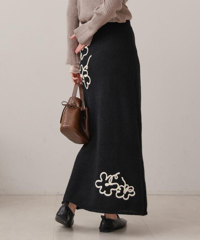 ウールライクフラワー刺繍スカート