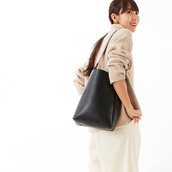 きれいめの仕上がりで通勤にもおすすめ。単品でも使えるインナーバッグ付き。ショルダーの長さは尾錠で変えられます。