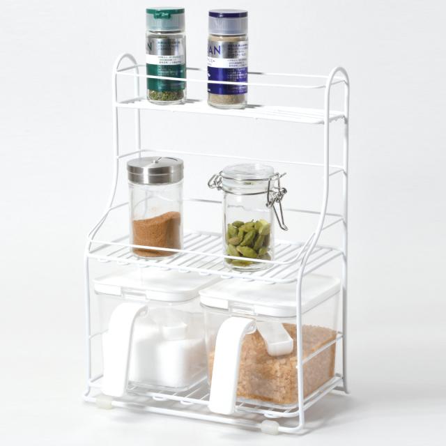 ブランキッチン 調味料ラック 2段 ストッカー3個付 ( スパイスラック キッチンラック 調味料収納 調味料スタンド スパイス置き 二段 セット 収納ラック 調味料 スパイス スタンド ラック 収納 棚 ストッカー )