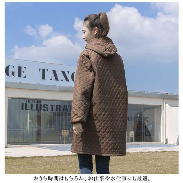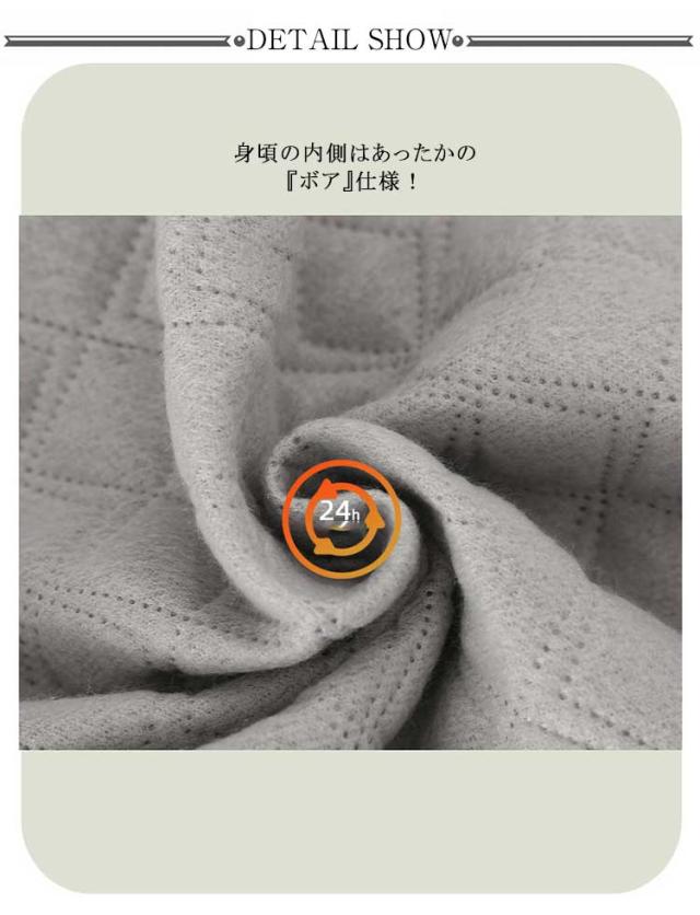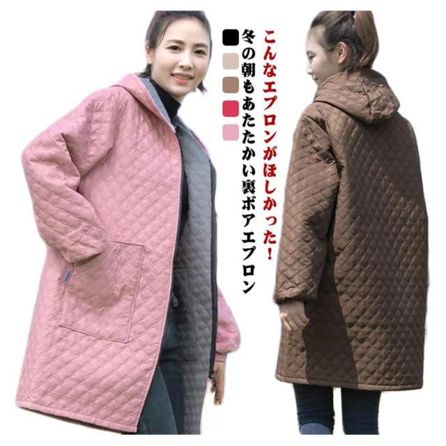 | こんなエプロンがほしかった!冬の朝もあたたかい裏ボアエプロン 表側は撥水加工を施したキルティング生地。 身頃の内側はあったかの『ボア』仕様! 洋服の上からサッと着ることができるから寒い朝もすぐにあったか。 袖部分にはボアが付いていないのでモタつかず動きやすい。 着るときも、袖でつっかえることなくスッと着られる◎ 袖口部分はストレッチ性のあるリブ切り替えで腕まくりもしやすい。 おうち時間はもちろん、お仕事や水仕事にも最適。 チュニック感覚で着られるゆったりとしたサイズ感。 体のラインをカバーしてくれるので、体型を気にせず着られるのも嬉しい。 フロントのファスナー仕様を開けて羽織りとして着ることもできる◎ ? | |