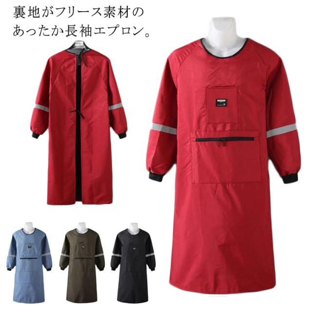 裏ボア メンズ 看護師 防寒 エプロン 裏起毛 動きやすい 長袖エプロン かっぽう着 レディース スモック かっぽうぎ 冬用エプロン ゆったり 撥水加工 介護士 暖かい 裏フリース 割烹着 料理 家事 保育士 保育園 幼稚園 エプロン ロング丈 あったか かわいい 冬 冬用