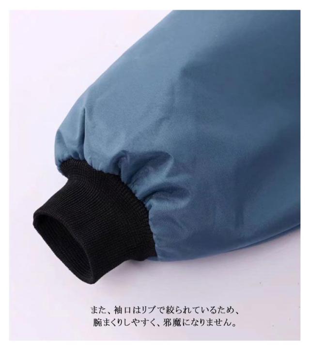 | 裏地がフリース素材のあったか長袖エプロン。 表地は撥水加工が施されているので水仕事にも便利です。 キッチンワークやガーデニング、畑仕事などに◎ また、袖口はリブで絞られているため、腕まくりしやすく、邪魔になりません。 前面にポケットが付いていて、スマホやハンカチ、メモなどの小物を収納するのに便利です。 長袖なので冷えがちな肘や二の腕も温まります。 ゆったりとした着心地なので重ね着しても動きやすく、スッポリかぶって着用できます。ヒップも隠れる着丈で、冷え対策だけでなく体型カバーにも! ルームウエア感覚で着られる暖かいエプロンです。 いくつあっても便利なエプロンは贈り物にもピッタリです♪ | |