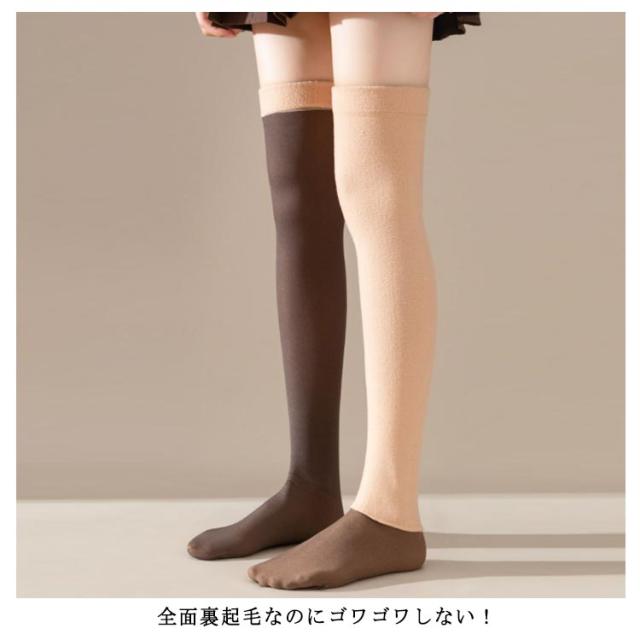 裏ボア ニーハイソックス 2足セット オーバーニー ストッキング トレンカ フェイク風 重ね着 厚手 ハイソックス 暖かい 靴下 くつ下 ロング丈 防寒 保暖 寒さ対策 秋冬 送料無料