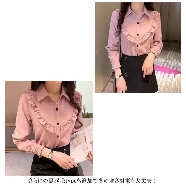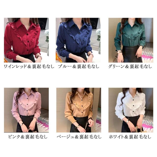 仕事着 コーデュロイシャツ 大きいサイズ 裏起毛 フリルブラウス 洗える プルオーバー 裏起毛*薄手!ブラウス カジュアル 冬服 秋服 事務 裏起毛*薄手!ブラウス 防寒 細見え レディース 裏起毛シャツ OL バルーン袖 暖かい レイヤード ワイシャツ あったか ぽっちゃり