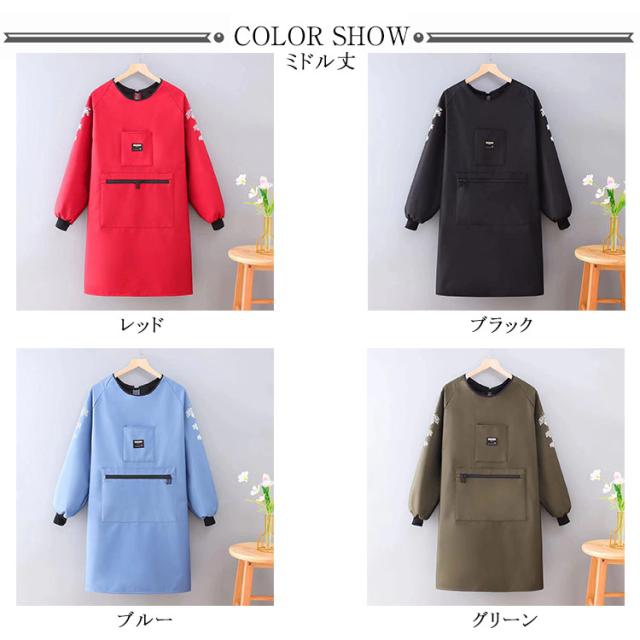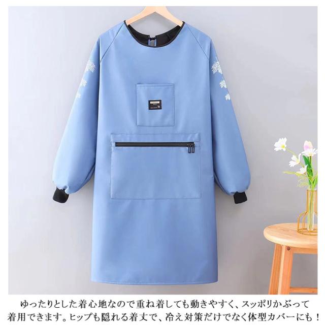 | ロング丈&ミドル丈!裏地がフリース素材のあったか長袖エプロン。 表地は撥水加工が施されているので水仕事にも便利です。 キッチンワークやガーデニング、畑仕事などに◎ また、袖口はリブで絞られているため、腕まくりしやすく、邪魔になりません。 前面にポケットが付いていて、スマホやハンカチ、メモなどの小物を収納するのに便利です。 長袖なので冷えがちな肘や二の腕も温まります。 ゆったりとした着心地なので重ね着しても動きやすく、スッポリかぶって着用できます。ヒップも隠れる着丈で、冷え対策だけでなく体型カバーにも! ルームウエア感覚で着られる暖かいエプロンです。 いくつあっても便利なエプロンは贈り物にもピッタリです♪ | |