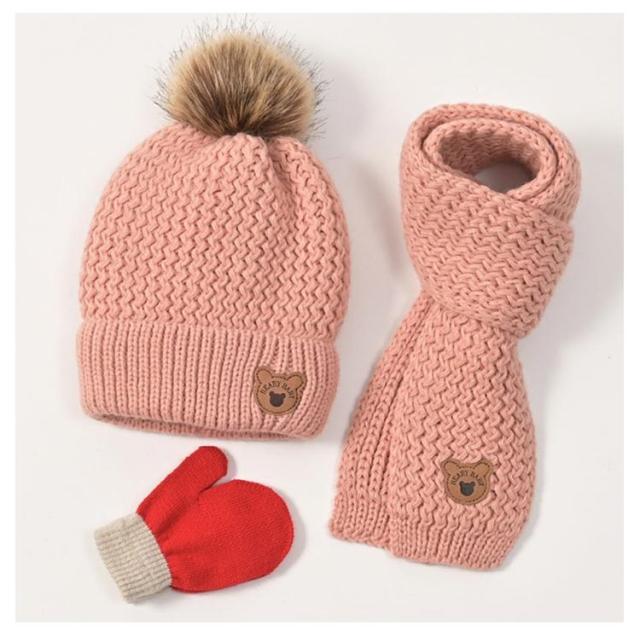 スヌード 3点セット ニット ストール 帽子 ニット帽 マフラー 赤ちゃん 子供 幼稚園 ネックウォーマー 可愛い 3点セット 暖かい ポンポン 手袋 女の子 男の子 キッズ 秋冬 ベビー 新生児帽子 防寒 お出かけ 通園 通学 保育園