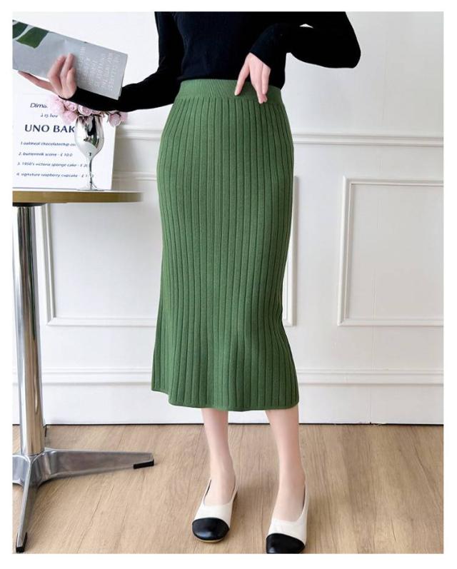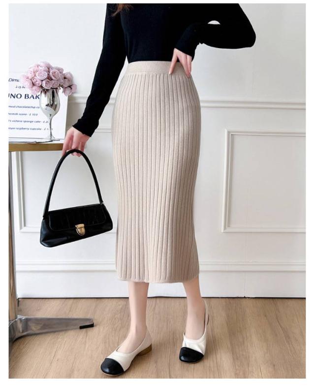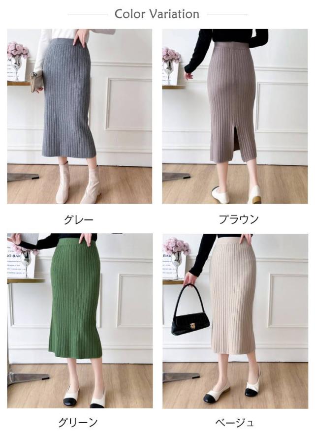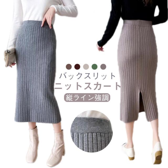 ミモレ丈 リブ スカート バックスリット スカート ニットスカート ペンシルスカート ナロースカート おしゃれ オフィス 通勤 30代 40代 キレイめ 春 秋 冬