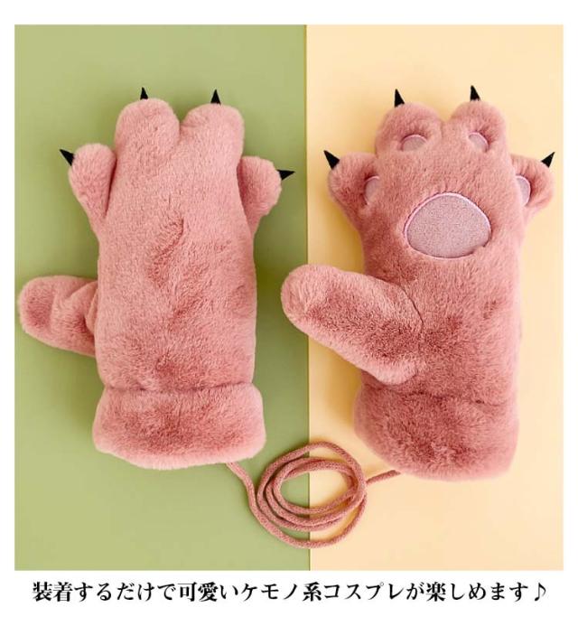 小道具 ネコ 爪デザイン ケモノ もこもこ 猫 ふわふわ コスプレ ハロウィン かわいい 肉球 左右セット 仮装 可愛い 猫爪 肉球 てぶくろ 獣人 男女兼用 衣装 大人 子供 舞台衣装 コスプレ小物 爪グローブ コスチューム あったか 温かい 暖かい 防寒