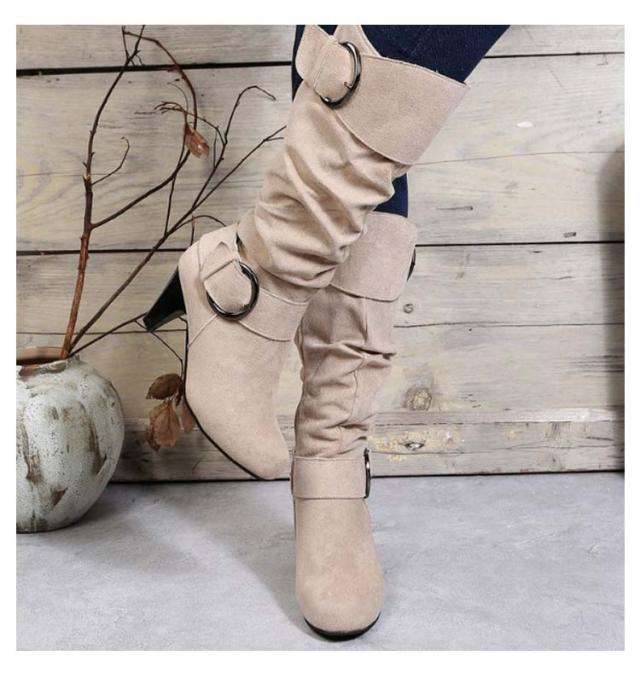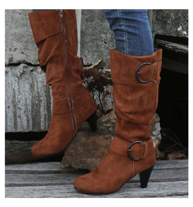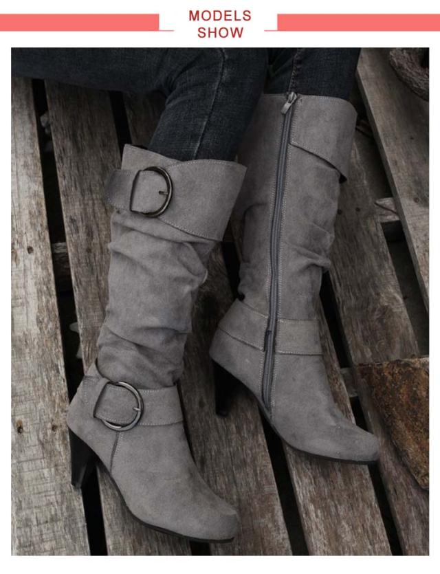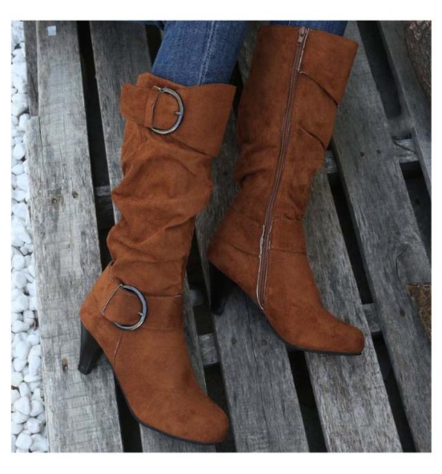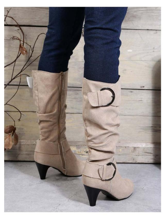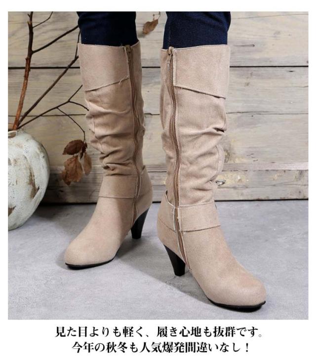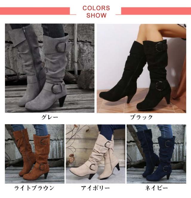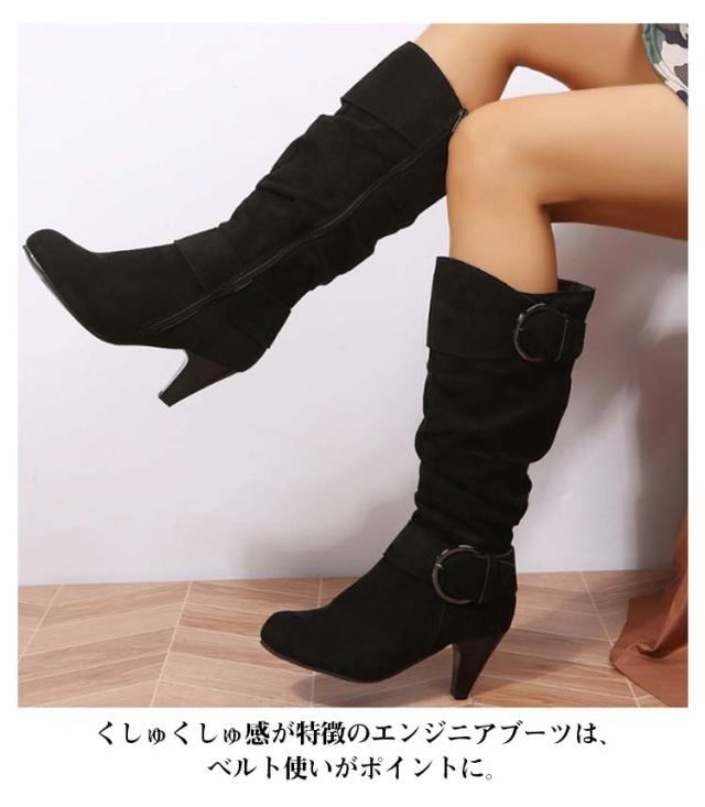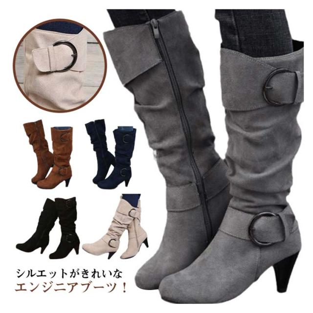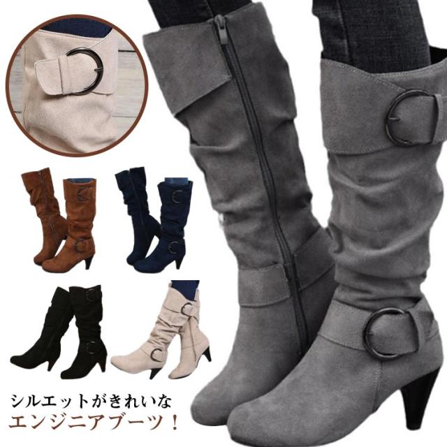 ロングブーツ 太ヒール 大きいサイズ ブーツ レディース 美脚 歩きやすい ローヒール 女性 滑り止め カジュアル おしゃれ 無地 シンプル 大人 通勤 エンジニア くしゅくしゅ 合皮 ロングブーツ サイドジップ ミディアム丈 ギフト プレゼント