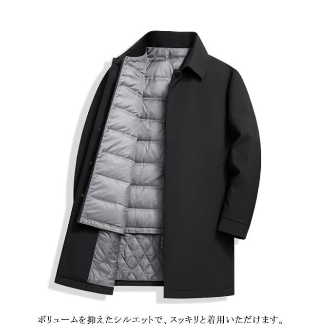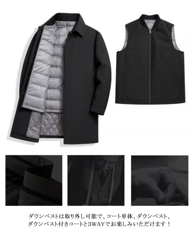 ダウン90% ステンカラー ダウンコート 3way ダウンベストライナー付き! メンズ アウター ビジネスコート 防寒 冬コート ジャケット ミドル フォーマル オフィス おしゃれ 通勤 高級感 紳士服 送料無料