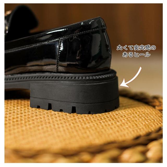 | 幅広ローファー 上品に高見えするエナメル調でボリューミーなファーがリッチな印象 柔らかく通気性のあるインソール 太くて安定感のあるヒール | |