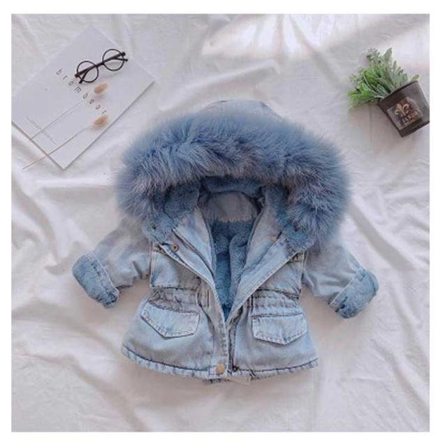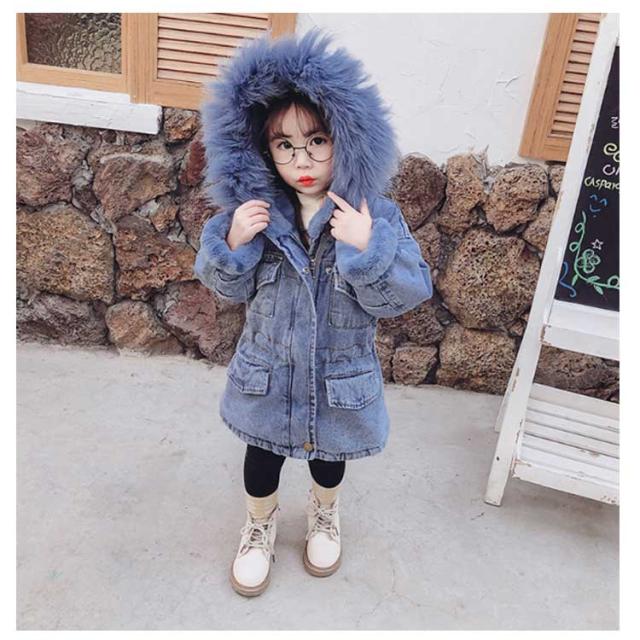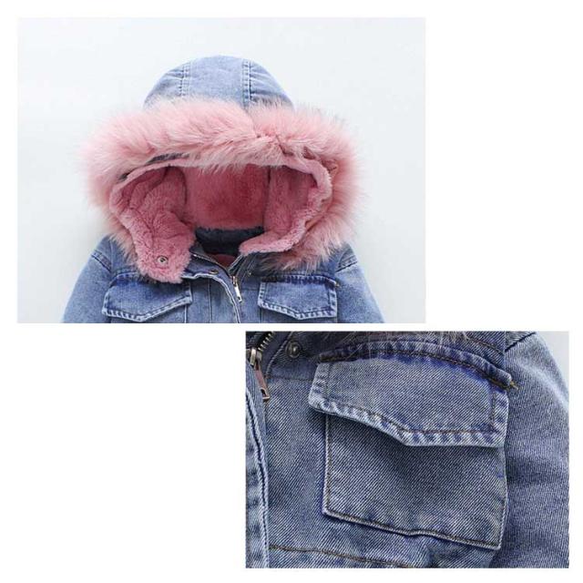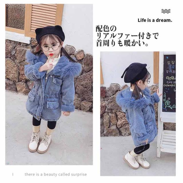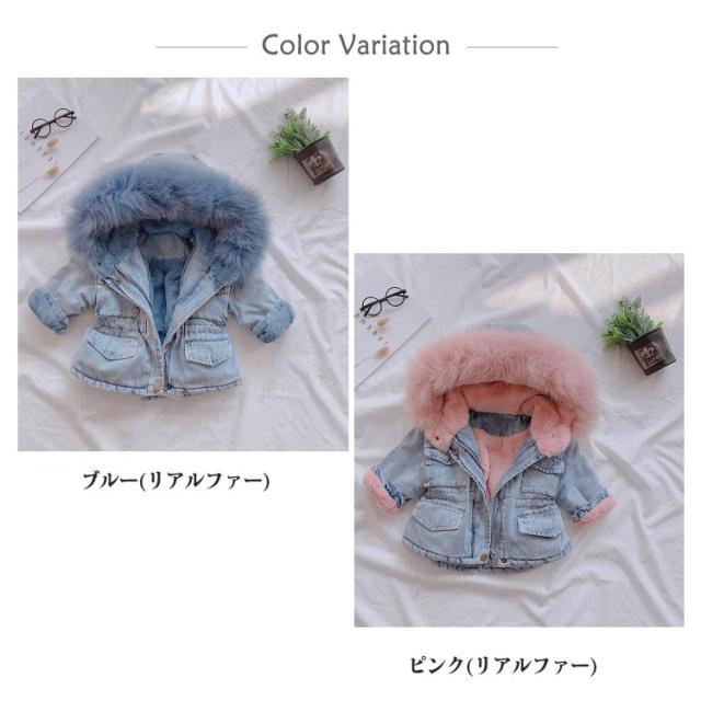 デニムジャケット キッズ リアルファー フード付き デニムコート 女の子 子供服 ファー 冬服 ジージャン ショート丈 ボア付き アウター 裏ボア 厚手 防寒 ボアジャケット あったか 冬服 暖かい 通園 通学 小学生 80-130cm 送料無料