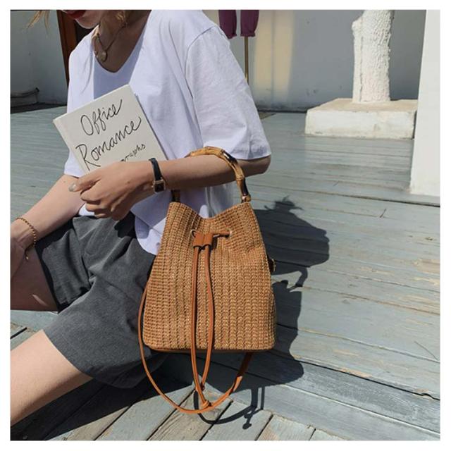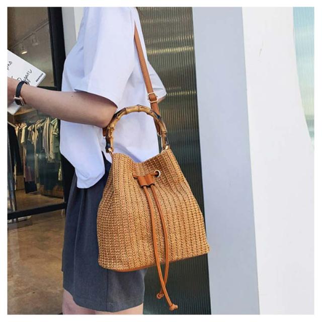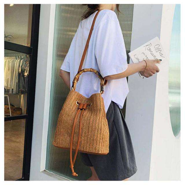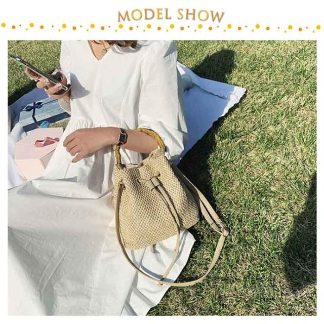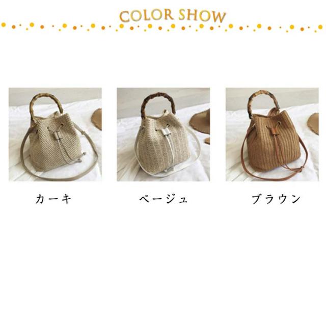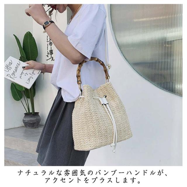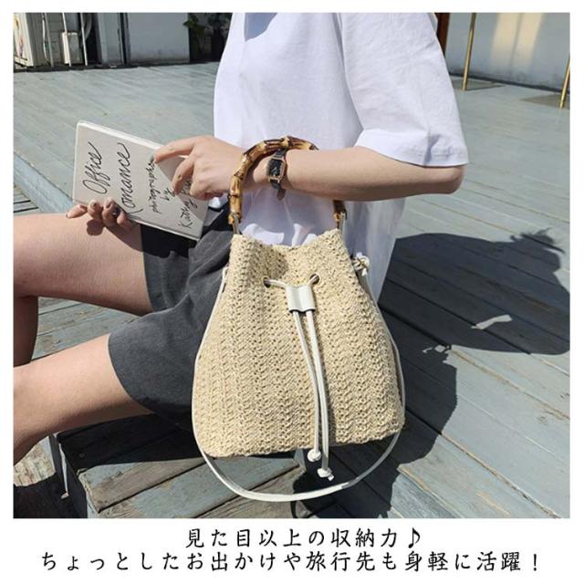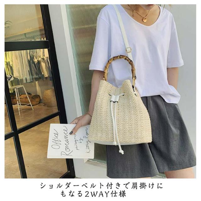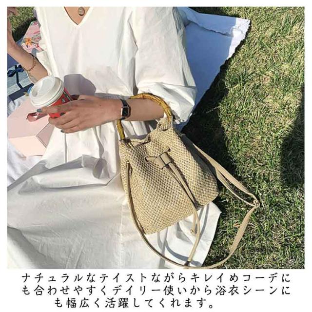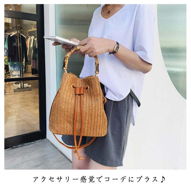 かごバッグ 斜めがけ 浴衣 2way かごバッグ 巾着 軽量 レディース バンブーハンドル ストローバッグ マチ広 バケツ型 自立 盆踊り お祭り 夏祭り