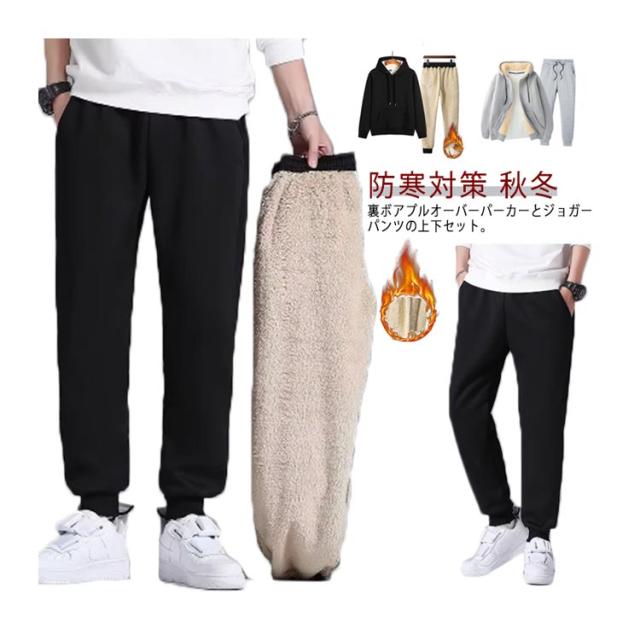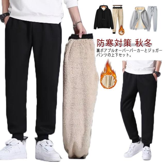 ジャージ メンズ スウェットパンツ 裏ボア スウェット 3タイプ 厚手 2点セット もこもこ 裏起毛 フード付き プルオーバーパーカー 上下セット パーカー ロングパンツ 裏起毛 ジョガーパンツ 暖かいパンツ アウトドア