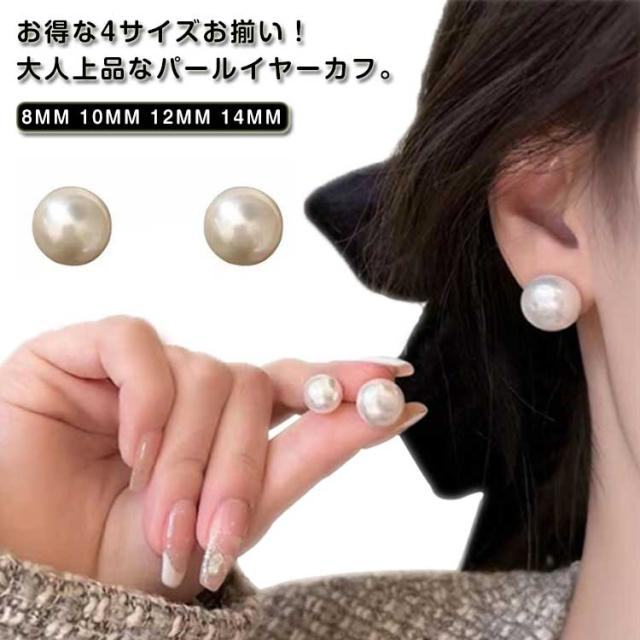 4サイズお揃い フェイクパール パール ノンホール 真珠イヤーカフ 4サイズお揃い イヤーカフ イヤリング ピアス ピアス パールイヤーカフ 女性 樹脂 大珠 大粒 痛くない ピアスに見える フォーマル