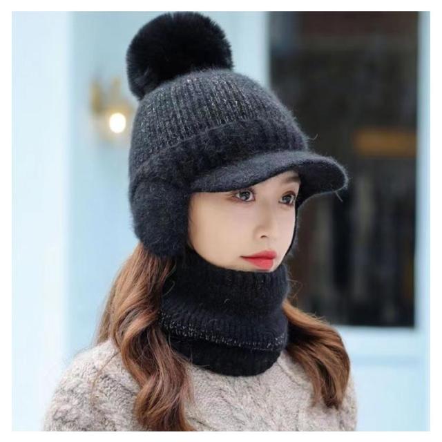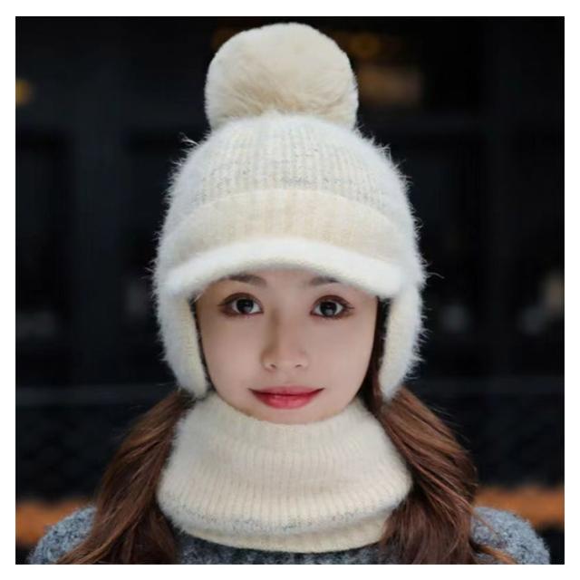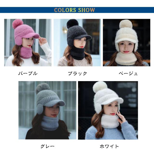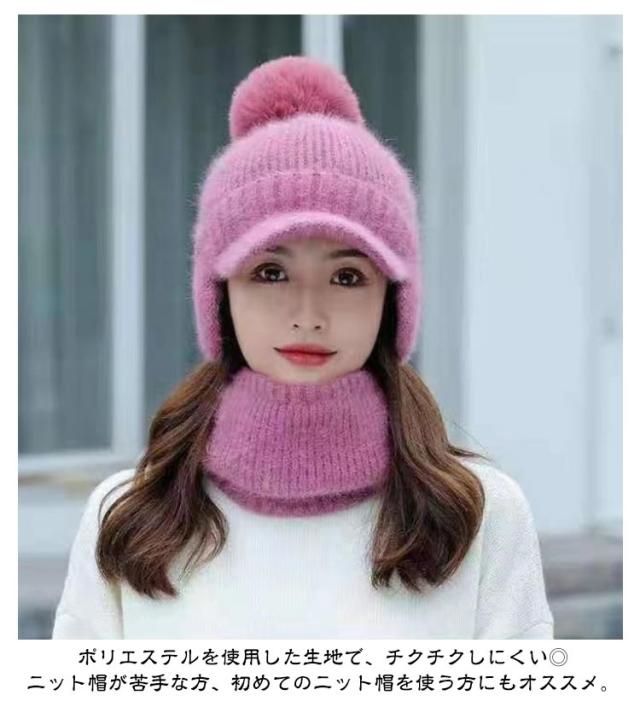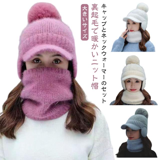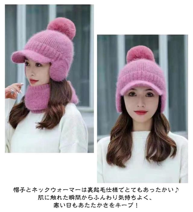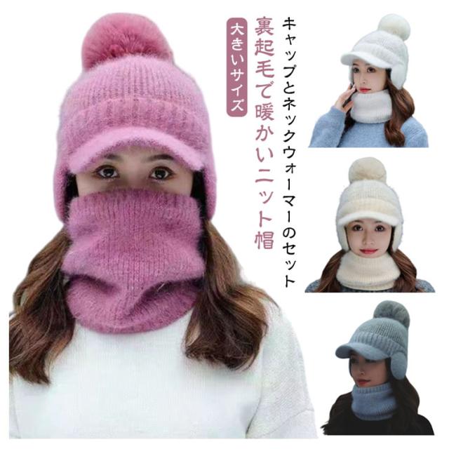 ニット帽 帽子 レディース 冬 裏起毛 ポンポンニットキャップ ネックウォーマー セット ニット帽子 マフラー 冬物 レディース帽子 女性帽子 ハット 防寒 つば付き 大きいサイズ 送料無料