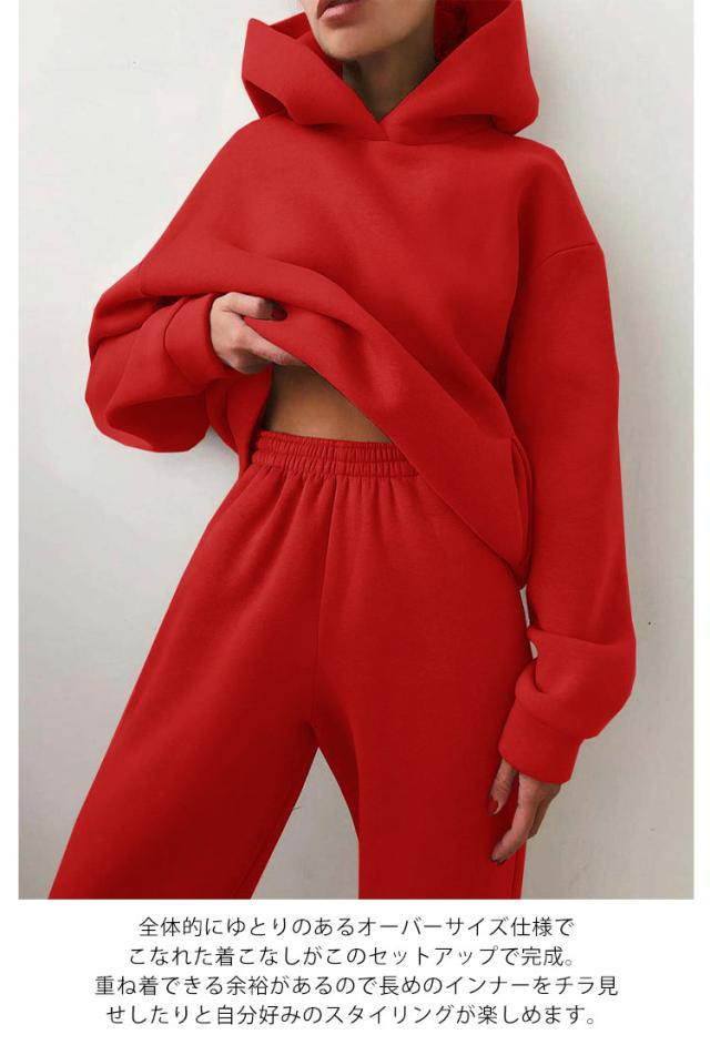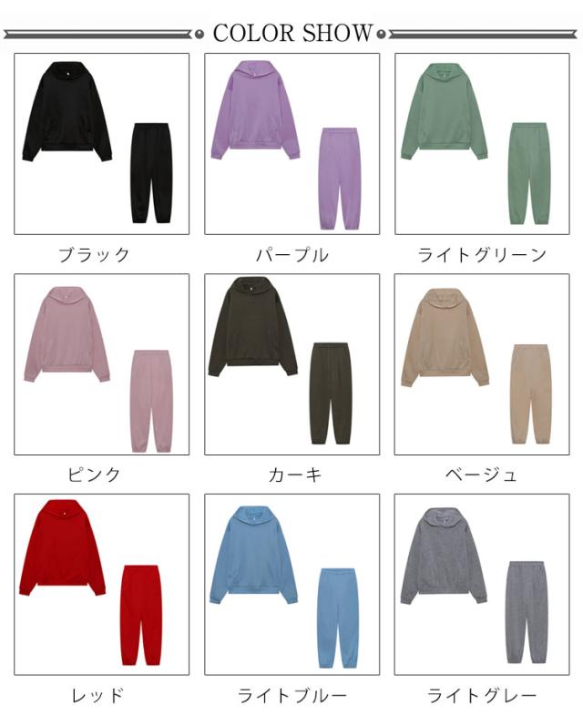 | S-3XL!裏起毛で暖かい。表生地はサラッとした肌触りに、裏生地はチクチクしない滑らかな起毛素材を採用。保温性が高く肌寒い日に気軽に着用できるスウェットのセットアップ。 デイリー使いにぴったり!お家でのルームウェアとしてはもちろん、ちょっとそこまでのワンマイルウェアやウォーキングやジョギング時のスポーツウェアとしても活躍。 シンプルで着回ししやすい。無駄な装飾のないシンプルなデザインでトップスとパンツを単体で着用することもできます。今注目を集めているスウェット素材はカジュアルにも綺麗めにも着こなすことができ、1着持っているとコーデの幅もグッと広がること間違いなし。 全体的にゆとりのあるオーバーサイズ仕様でこなれた着こなしがこのセットアップで完成。重ね着できる余裕があるので長めのインナーをチラ見せしたりと自分好みのスタイリングが楽しめます。 トップスには大きめの立体的なフード、前身頃の左右にポケットついています。パンツのウエスト部分はゴム仕様で着脱しやすい。 セットアップとして着用するのはもちろんのこと、別々でも着用していただけます。 アウトドアやスポーツ、部屋着まで幅広くお使いいただけます。 | |