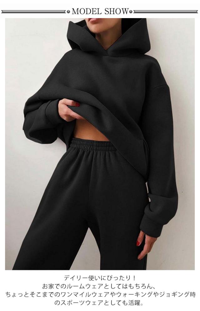 暖かい 裏起毛 防寒 2点セット レディース メンズ フード付き パーカー 上下セット トレーニングウェア ジャージ セットアップ 厚手 モコモコ 冬 ジョガーパンツ 長袖 女性 寝間着 暖かい トレーナー スウェットパンツ