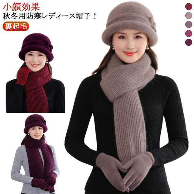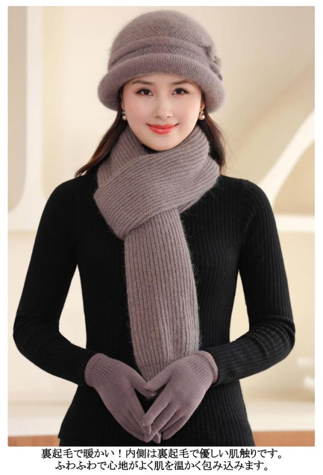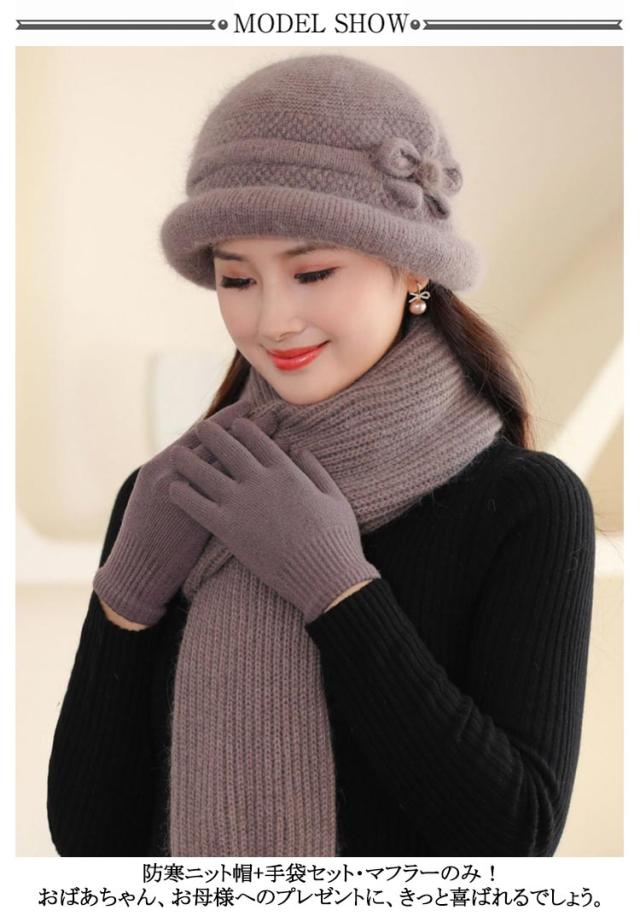帽子 レディース 秋冬 ミセス シニア 帽子 ニット帽 おばあちゃん レディース ハット 婦人帽 マフラー 手袋 セット 裏起毛 保温 防寒 上品 柔らかい 暖かい ぬくぬく あったか 可愛い おしゃれ 祖母 母 40代 50代 60代 70代 秋 冬 誕生日 敬老の日 ギフト プレゼント