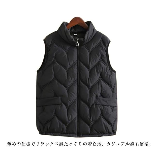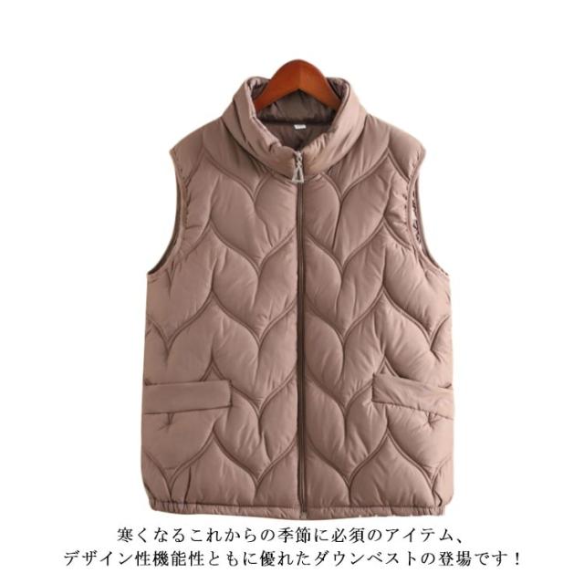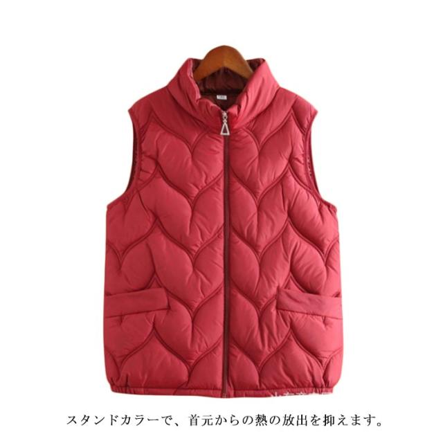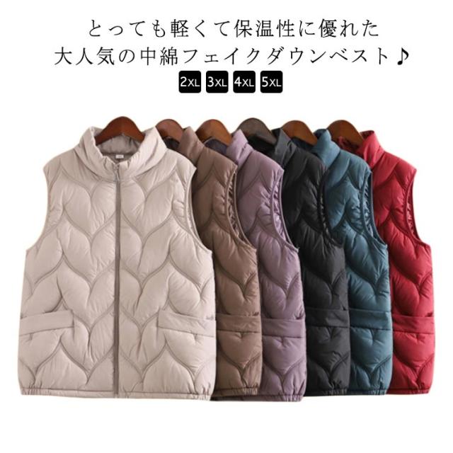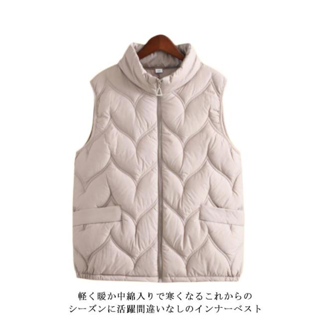 ダウンベスト 立ち襟 レディース トップス 暖かい インナーダウンベスト 中綿ベスト インナーベスト ライトダウン 軽量 大きいサイズ 撥水 シンプル 薄い フェイクダウン 無地 立ち襟 アウター 秋 冬 大人 婦人 おしゃれ