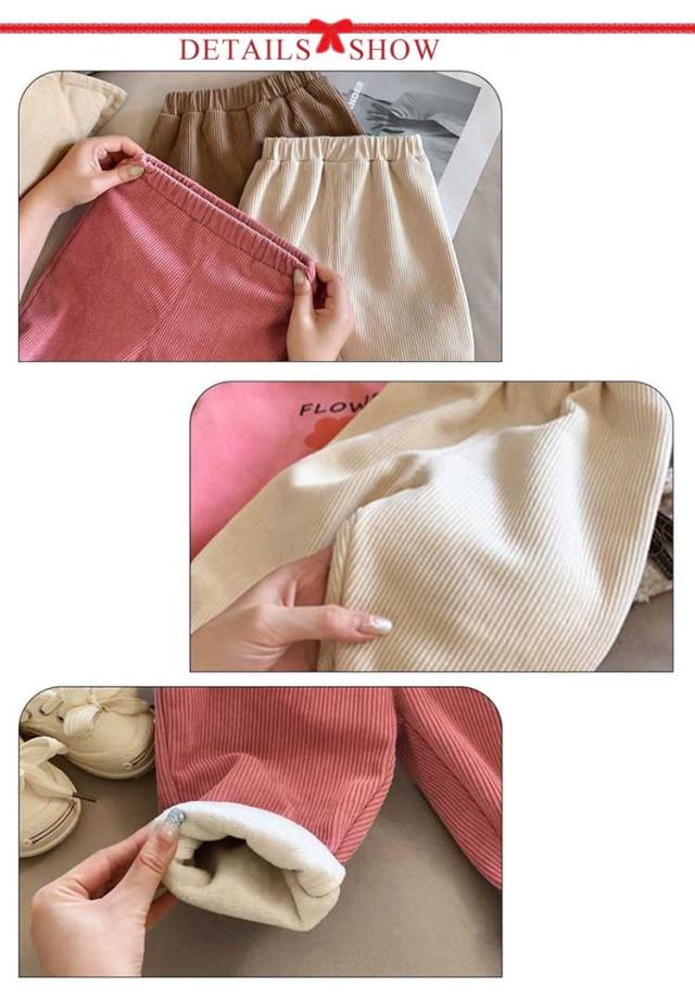 | 80-130cm 裏起毛の素材がふわふわで、暖かさプラス着心地の良さも叶えたアイテム。 秋冬に欠かせないアイテム!裏フリースのコーデュロイパンツが登場! ソフトで柔らかい肌触り、どんな動きもサポートしてくれる。 トレーナーやロンtなどカジュアルスタイルにお勧めです。 通学・通園はもちろん、お家でのリラックスウェアとしても◎ | |