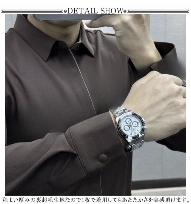 | 裏起毛*裏起毛なし!秋冬仕様のありそうでなかった前開き裏起毛長袖ポロシャツ。 裏起毛がほんのり暖かく柔らかいので着心地抜群。日常使いにもぴったりです。 しっかりした襟元で、アイロンが不要。いつでもキチンとした印象を保てます。 程よい厚みの裏起毛生地なので1枚で着用してもあたたかさを実感頂けます。 洗濯機と乾燥機に対応し、日々のお手入れが簡単。 | |