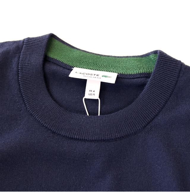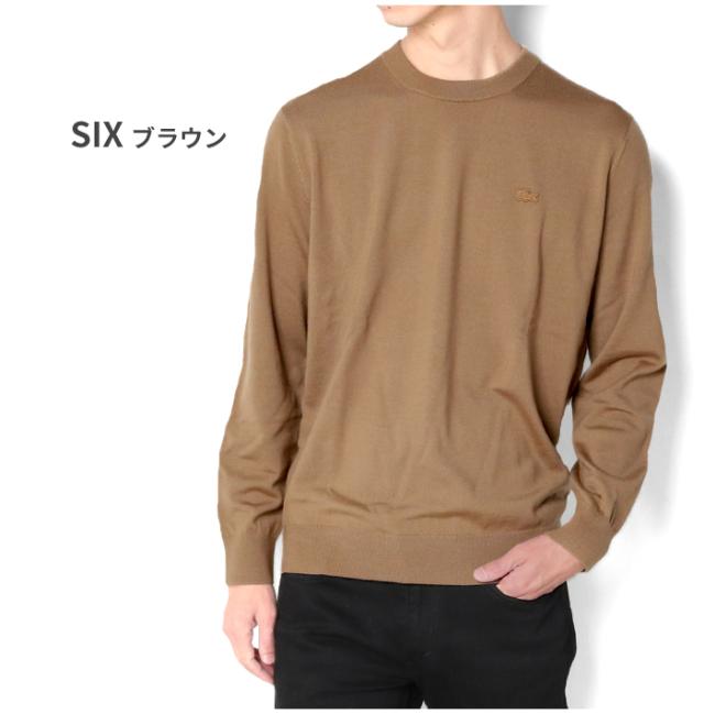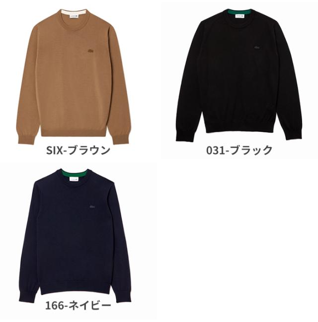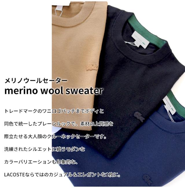 LACOSTE ラコステ メリノウール セーター AH1969-99 茶/黒/紺 3色 M-L ニット クルーネック ウール ワニ ロゴ トップス ウェア カジュアル エレガント プレゼント ギフト 同色ロゴ