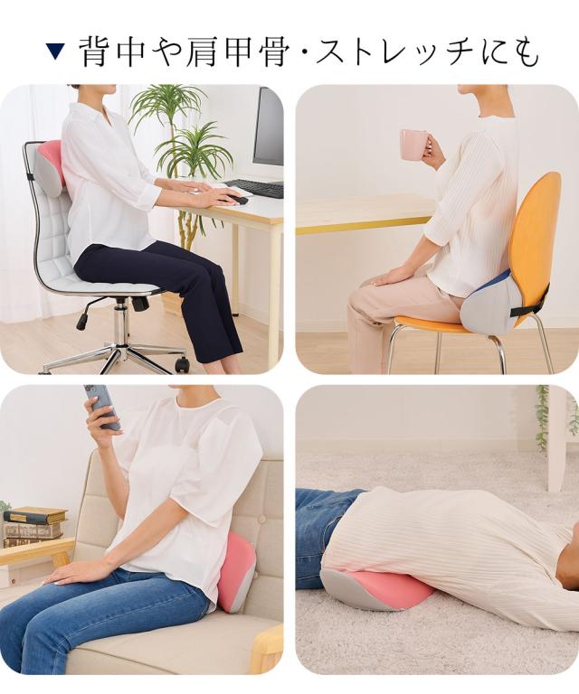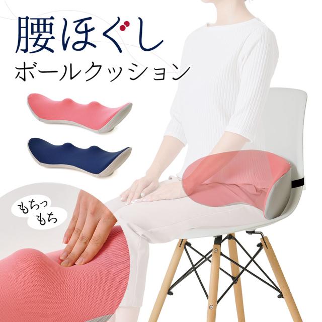 腰 マッサージ グッズ クッション コリ ほぐし グッズ ボール こし 背中 肩甲骨 ストレッチ 美姿勢 背筋 お尻 腰痛 猫背 姿勢 自然 ゆがみ オフィス テレワーク ストレッチ ふわふわ もちもち 背もたれ 装着 気持ちいい ピンク ネイビー 腰ほぐしボールクッション 191