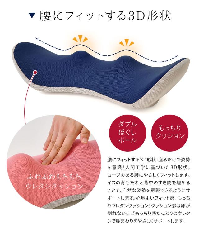 腰にフィットする3D形状!座るだけで姿勢を意識!