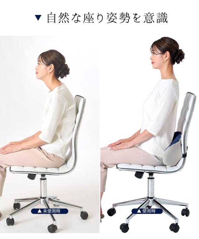 イスの背もたれと背中のすき間を埋めることで、自然な姿勢を意識できるようにサポートします。