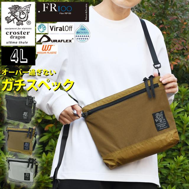 サコッシュ クロスボディバッグ ショルダーバッグ 薄マチ 2Way 4L ストリート FR100 Fiber Rip 撥水 耐水 撥水ファスナー 抗菌 YKK サブバッグ メンズ レディース 男女兼用 スポーティ croster dragon クロスタードラゴン 4リットル ファイバーリップ ナイロン 多機能