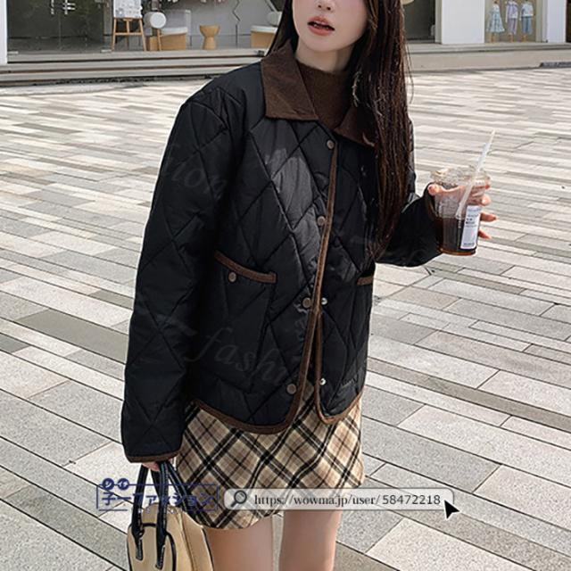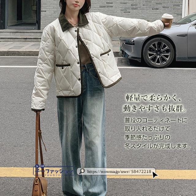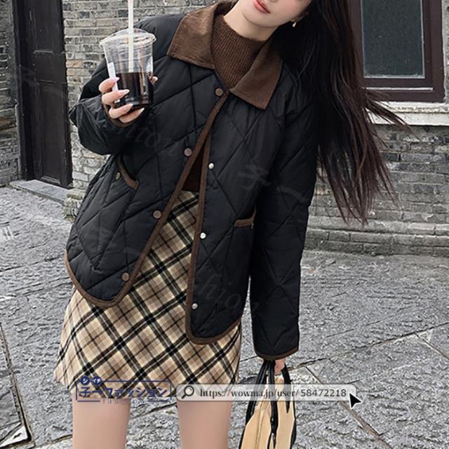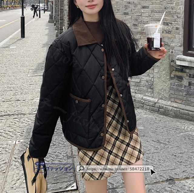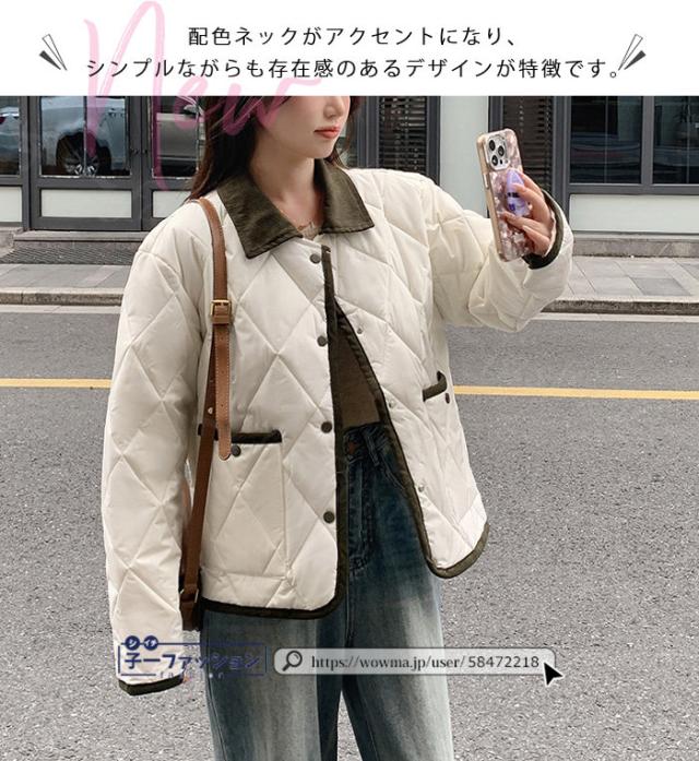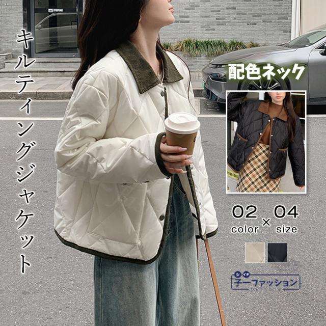 中綿コート 中綿ジャケット コート アウター レディース 羽織り 上着 冬新作 送料無料 中綿 体型カバー 襟付き ゆったり 冬 カジュアル あったか 配色ネック キルティングジャケット 無地 大人 通勤 学生 通学 秋冬 バレンタイン