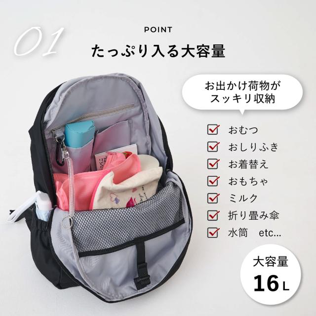 ママカル mamacaru リュック バッグ バックパック メンズ レディース 16L 大容量 A4 撥水 軽量 ブラック グレー 黒 623-366