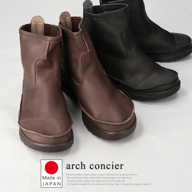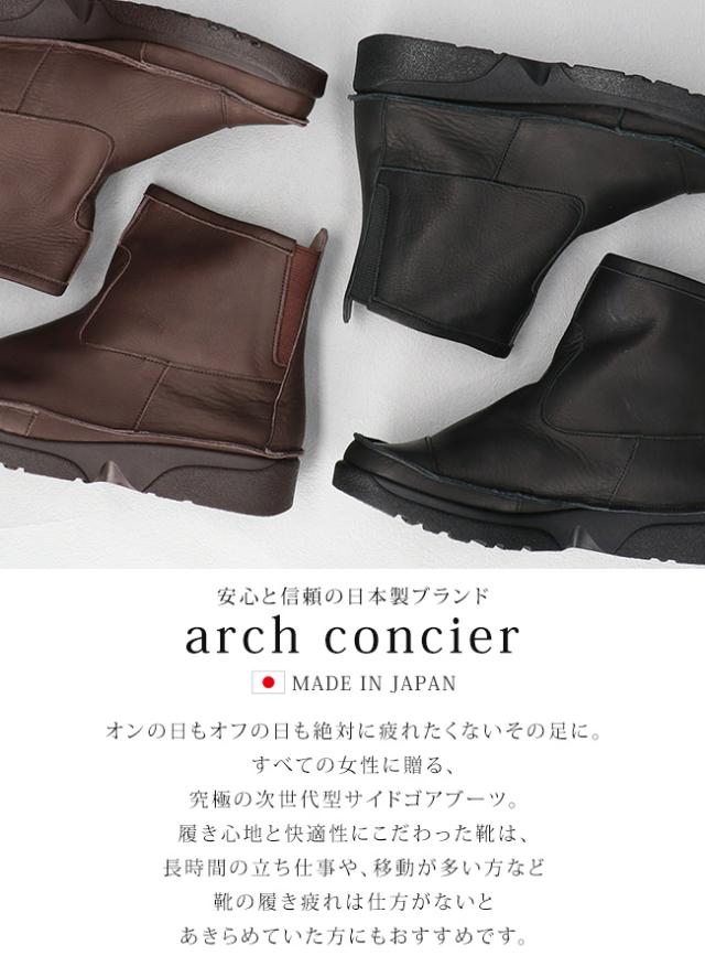 アーチコンシェル ブーツ ショート レディース 本革 歩きやすい 痛くない 履きやすい 疲れない 柔らかい 厚底 ウェッジソール 軽量 低反発 サイドゴア 黒 茶 おしゃれ かわいい 秋 冬 通勤 日本製 靴 D-501