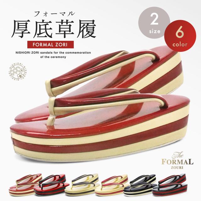 光沢が美しい 厚底草履 3枚芯で高級感アップ 選べる 6色 2サイズ フリーサイズ LLサイズ 2石鼻緒風 合皮 艶あり 単品 金 銀 ゴールド シルバー 赤 ブラック 黒 振袖に最適 結婚式 入学式 卒業式 お宮参り 訪問着 式典 和服全般 卒業袴 袴