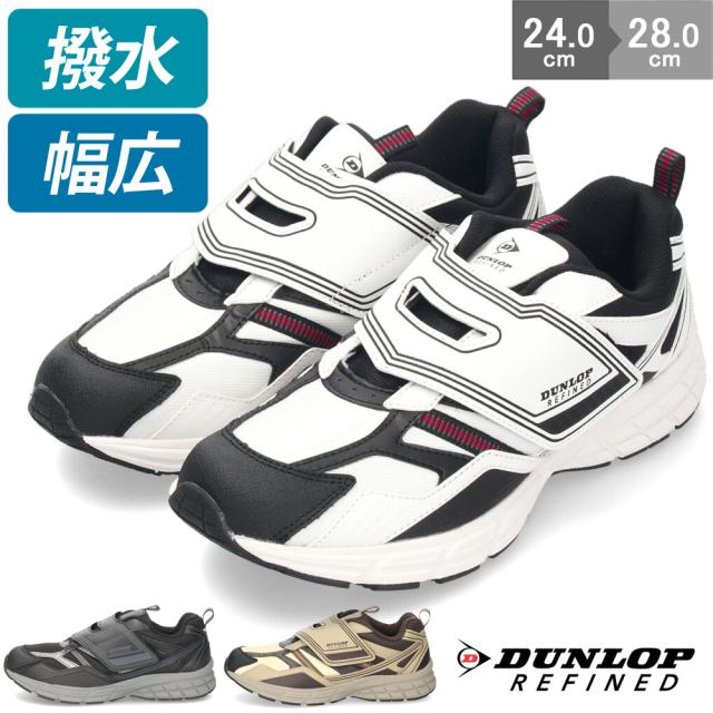 ダンロップ スニーカー メンズ 靴 ウォーキングシューズ 幅広 軽い 撥水 ダンロップリファインド DM2021 M2021 ホワイト ブラック ベージュ 黒 白 ベルクロ 面ファスナー DUNLOP REFINED